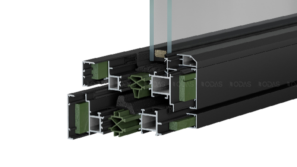 鋁合金作為金屬,具有良好的導(dǎo)熱性,傳統(tǒng)的鋁合金門窗容易成為室內(nèi)外熱量傳遞的橋梁,導(dǎo)致室內(nèi)溫度變化快,能耗高。而斷橋結(jié)構(gòu)即是在型材多腔體結(jié)構(gòu)中間設(shè)置隔熱條,可以將室內(nèi)外型材分開,從而有效降低室內(nèi)外熱傳導(dǎo),減少空調(diào)和采暖能耗。