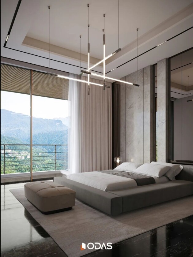 項(xiàng)目主臥室的設(shè)計(jì)展現(xiàn)出一種樸素、溫馨、輕松、謙遜又充滿內(nèi)在智慧的優(yōu)雅氣質(zhì)。注重私密性和舒適度,引入窗外美景,將大自然的包容性與家庭的溫馨氛圍完美交融。