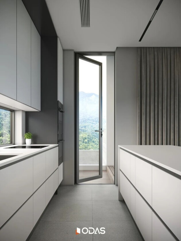 細(xì)節(jié)打磨到恰到好處,方能擁有更多游刃有余的空間。面對(duì)室外復(fù)雜天氣環(huán)境,對(duì)平開(kāi)門有著更高的性能要求。廚房側(cè)門采用歐大師攬光85外平開(kāi)門,打通室內(nèi)外鏈接,營(yíng)造兼具實(shí)用主義和自然美學(xué)的家居生活空間。