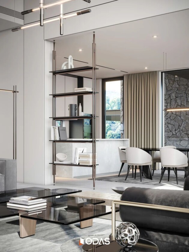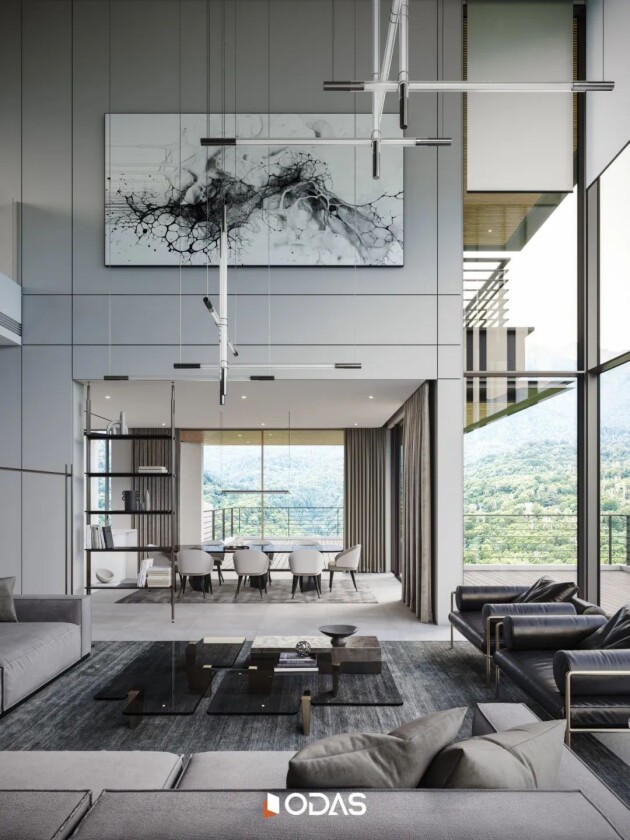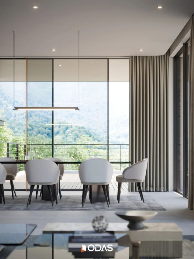 別墅大宅以大空間為特色,在設(shè)計(jì)時(shí)尤為強(qiáng)調(diào)整體空間的開(kāi)放與流暢性。通過(guò)巧妙地運(yùn)用門窗作為功能區(qū)之間的橋梁與分隔,利用其靈活開(kāi)合特性打破傳統(tǒng)空間限制,極大地延伸視覺(jué)邊界,營(yíng)造寬廣、通透且舒適的居家氛圍。
