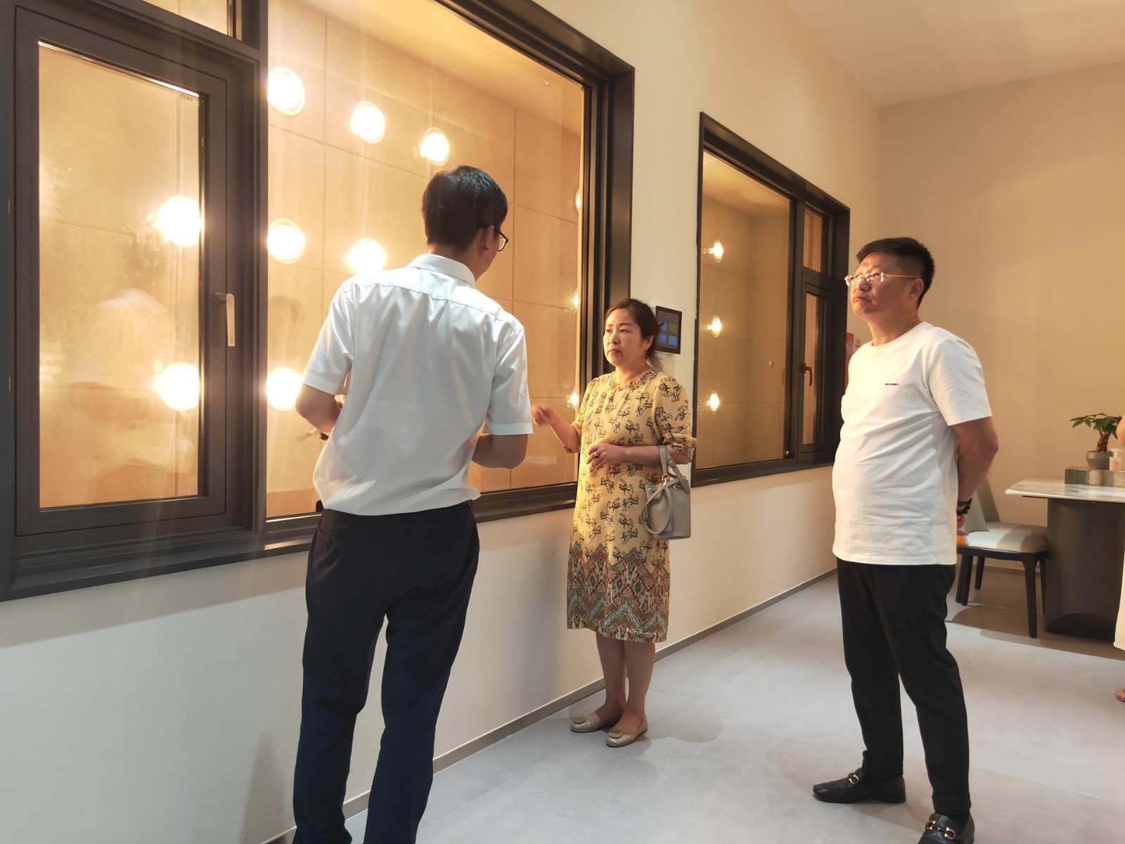 歐大師研發(fā)部張文魁向藍城集團一行一一介紹并體驗歐大師隔熱門窗產品,在細致的講解和演示下,近距離感受和聽取歐大師隔熱門窗產品的設計運用理念,精湛的工藝和堅持創(chuàng)新的精神,歐大師品牌實力、綠色發(fā)展理念、獨特性能和匠心品質,這些前瞻性的布局和思維得到梁宏瑀女士的贊許和肯定。
