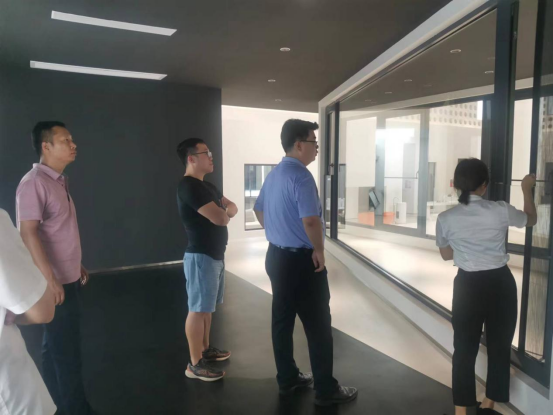 首先,王秘書長一行領(lǐng)導(dǎo)參觀了企業(yè)總部展廳,工作人員就企業(yè)目前多款主打產(chǎn)品進(jìn)行了詳細(xì)介紹,并通過實(shí)景模擬方式展示了歐大師隔熱門窗的優(yōu)異性能。